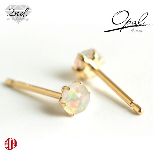 【A.UN jewelry】◆セカンドピアス◆ オパール ≪直径約4mm≫ K18 YG / カボション ピアス / 軸太 0.9mm 軸長さ 12mm つけっぱなし スタッドピアス made in japan エチオピアンオパール 10月 誕生石 K18YGシリコンダブルキャッチ付き♪ / 両耳用