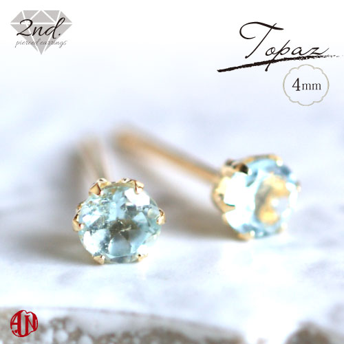 【A.UN jewelry】◆セカンドピアス◆ スイスブルートパーズ ≪直径約4mm≫ K18 YG 【鑑別済み】 軸太 0.9mm 軸長さ 12mm つけっぱなし スタッドピアス made in japan 11月 誕生石 K18YGシリコンダブルキャッチ付き♪ / 両耳用