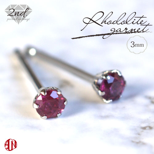 【A.UN jewelry】◆セカンドピアス◆ ロードライトガーネット ≪直径約3mm≫ Pt900 【鑑別済み】 軸太 0.9mm 軸長さ 10mm つけっぱなし スタッドピアス made in japan 1月 誕生石 Pt900シリコンダブルキャッチ付き♪ / 両耳用