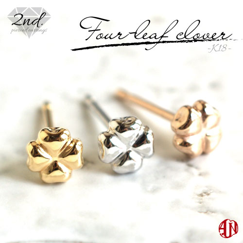 【A.UN jewelry】◆セカンドピアス◆ クローバー 【K18】 / YG イエローゴールド ・ WG ホワイトゴールド ・ PG ピンクゴールド / 軸太 0.9mm 軸長さ 12mm / つけっぱなし スタッドピアス made in japan 四つ葉 / 両耳用