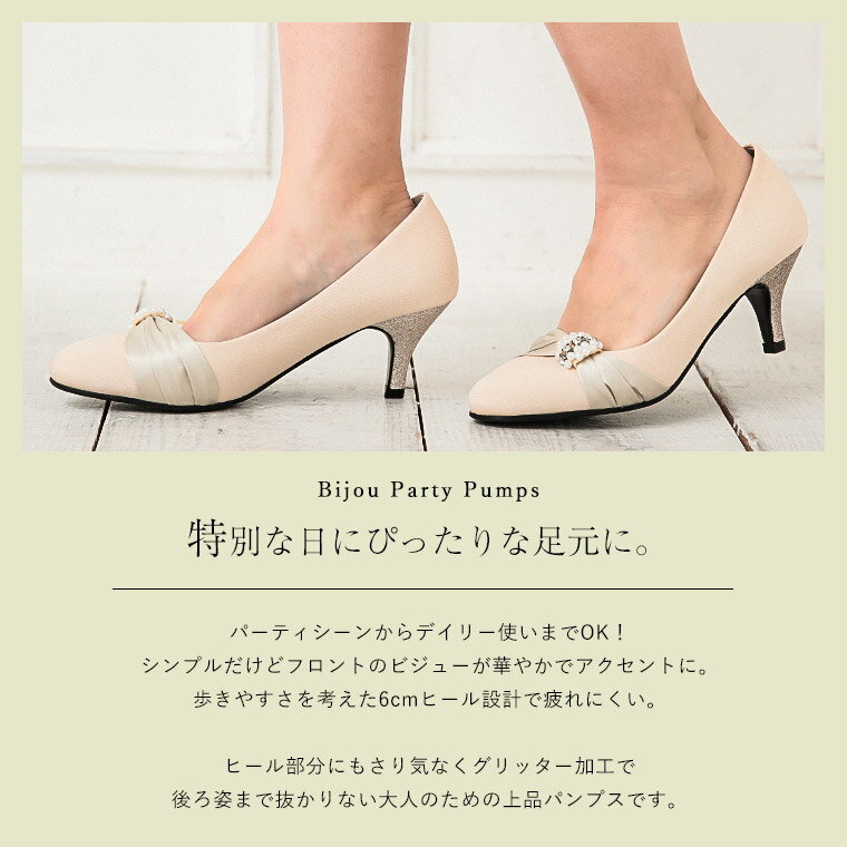 結婚式 パンプス 靴 美脚 ローヒール 疲れにくい 大きいサイズ 5センチヒール 6センチヒール ミドルヒール 22.5 23 23.5 24 24.5 リボンパンプス ビジュー パール ベージュ ブラック 黒 二次会 パーティー お呼ばれ 謝恩会 演奏会 成人式 同窓会 オケージョン 送料無料
