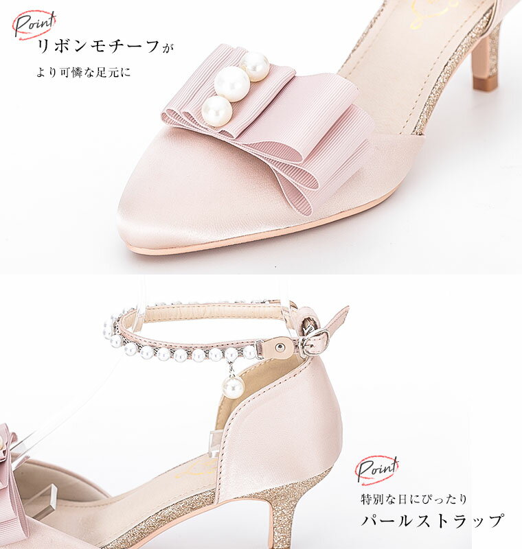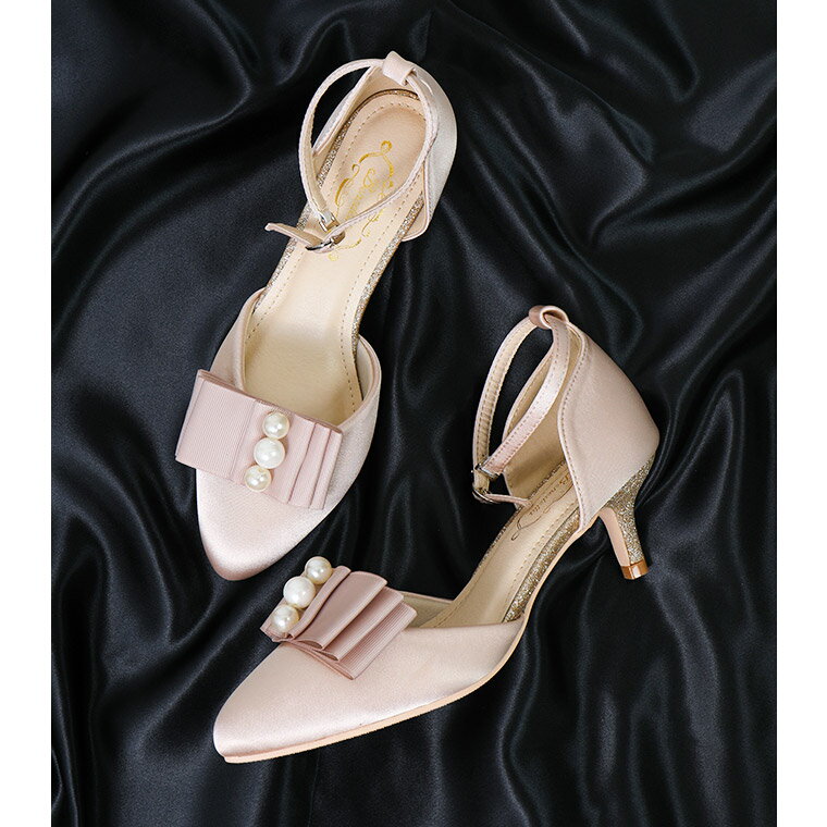 結婚式 パンプス サテン pumps ラウンドトゥ ピンヒール パーティー 2次会 キャバ 美脚 ハイヒール ミドルヒール 同窓会 ローヒール オフィス ベージュ ブラック 黒 パール リボン ラメ 靴 シューズ レディース