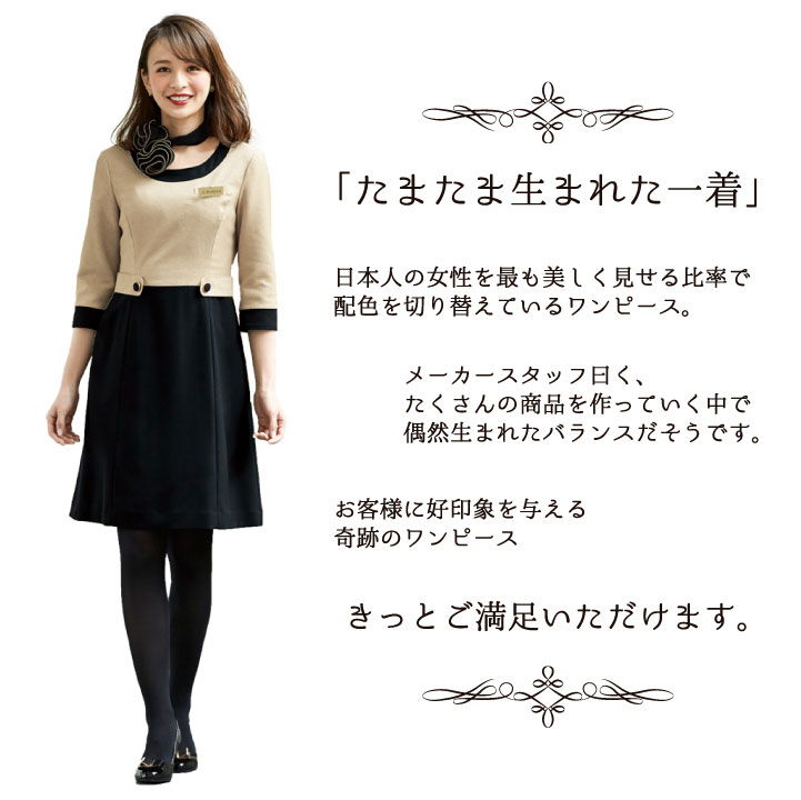 ワンピース アンジョア enjoie 事務服 制服 仕事服 クリニック 病院 美容 受付 接客業 レディース おしゃれ 上品 レトロ調 着脱しやすい オールシーズン jo-61520