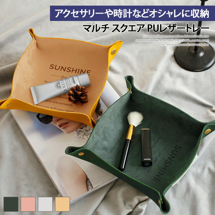 マルチスクエア PUレザートレー 小物入れ フェイクレザートレイ 小物ケース アクセサリー入れ コスメ入れ 鍵 トラベルトレー 旅行 デスクトレイ 卓上トレイ インテリア プレゼント ギフト おしゃれ 正方形